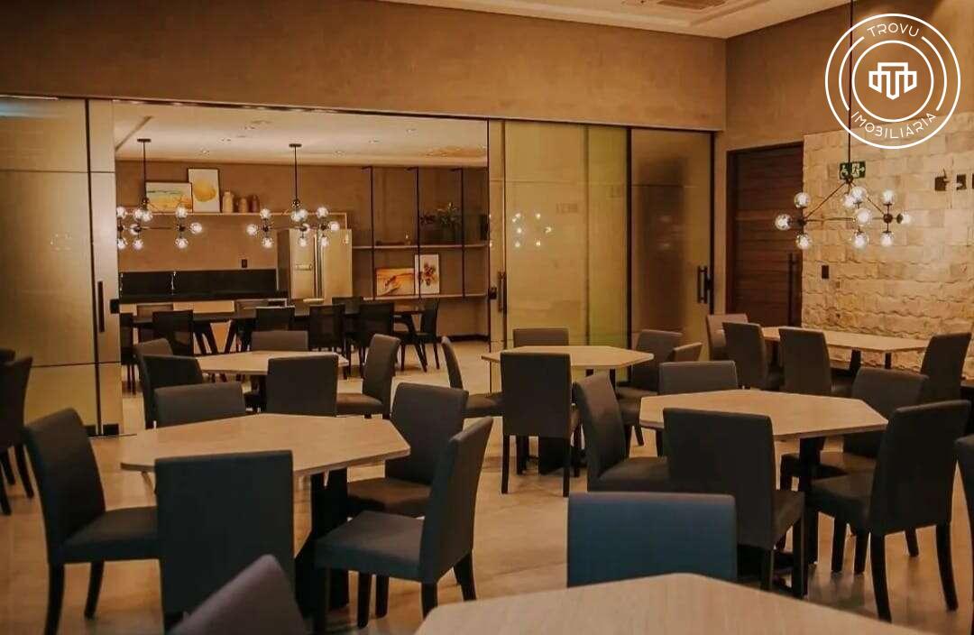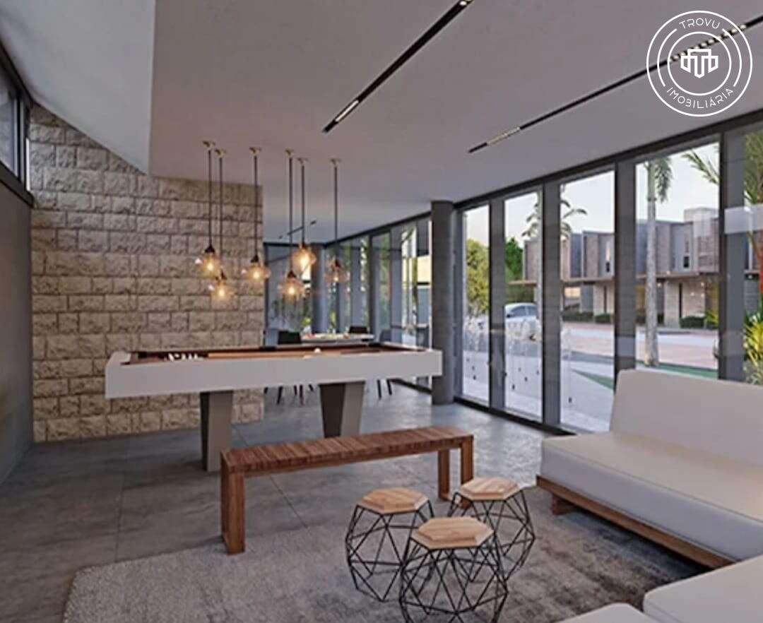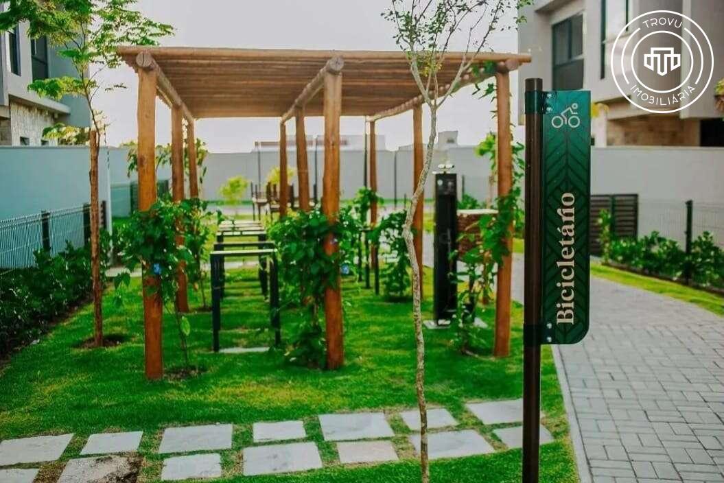 O condomínio oferece uma infraestrutura completa de lazer e segurança, com piscina com prainha, espaço gourmet equipado, academia com vista, salão de festas moderno, quadras esportivas, playground, bicicletário com bikes compartilhadas e áreas verdes com pista de caminhada. Conta ainda com portaria 24h, monitoramento por câmeras e ampla estrutura para visitantes.