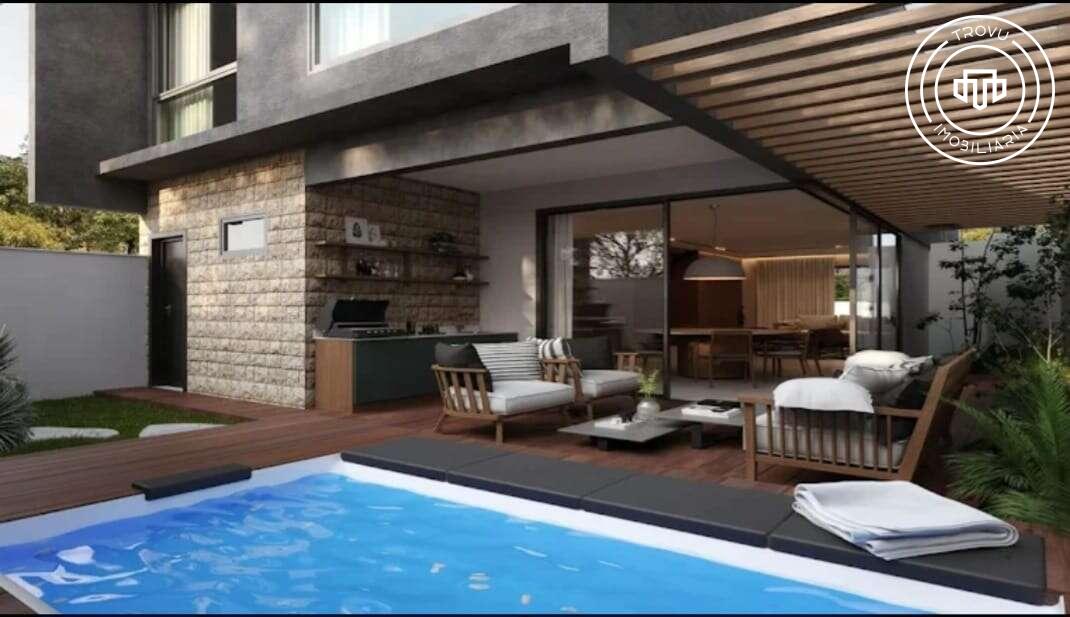 A garagem coberta para dois veículos possui infraestrutura para carros elétricos, reforçando o compromisso com sustentabilidade. A posição sul e o fundo com muro garantem mais privacidade e conforto térmico.