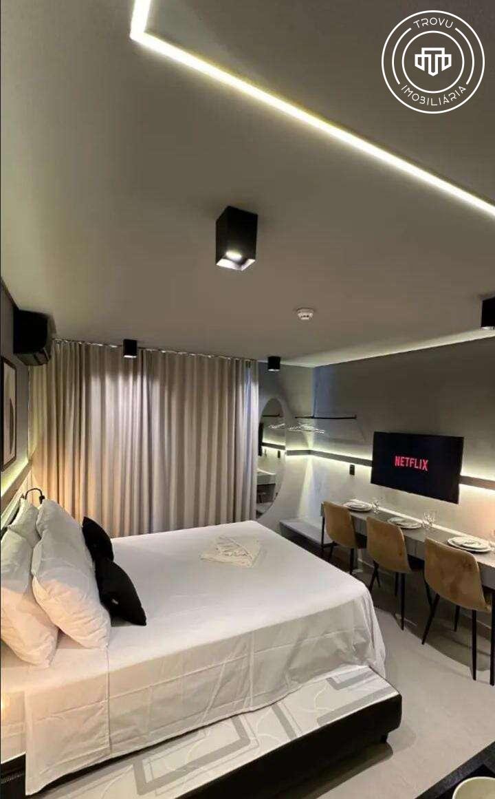 O flat possui 21 m², é totalmente mobiliado e foi projetado para oferecer funcionalidade e aconchego. Dispõe de ar-condicionado, armários planejados na cozinha e no quarto, otimizando o espaço e garantindo maior comodidade. Uma excelente opção para quem deseja investir em um imóvel pronto, bem localizado e com alta demanda de locação.