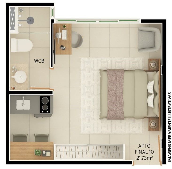 Os Flats com 1 dormitório oferecem o equilíbrio perfeito entre conforto e funcionalidade. Projetados com atenção aos detalhes, cada unidade é cuidadosamente pensada para proporcionar um espaço acolhedor e moderno. Aproveite ambientes bem iluminados, acabamentos de alta qualidade e uma distribuição inteligente dos cômodos.